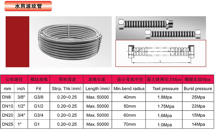 本公司安徽恒達管業(yè)所生產(chǎn)的水用金屬軟管以其柔軟、輕巧、使用方便等特點,受到越來越多的用戶的青睞。